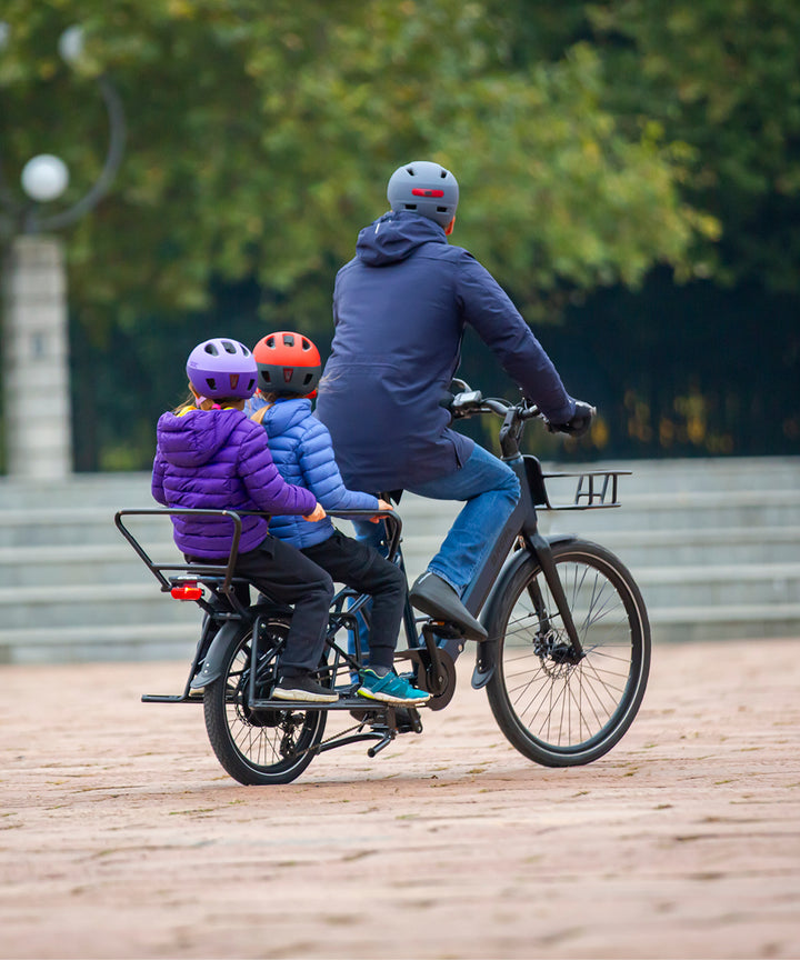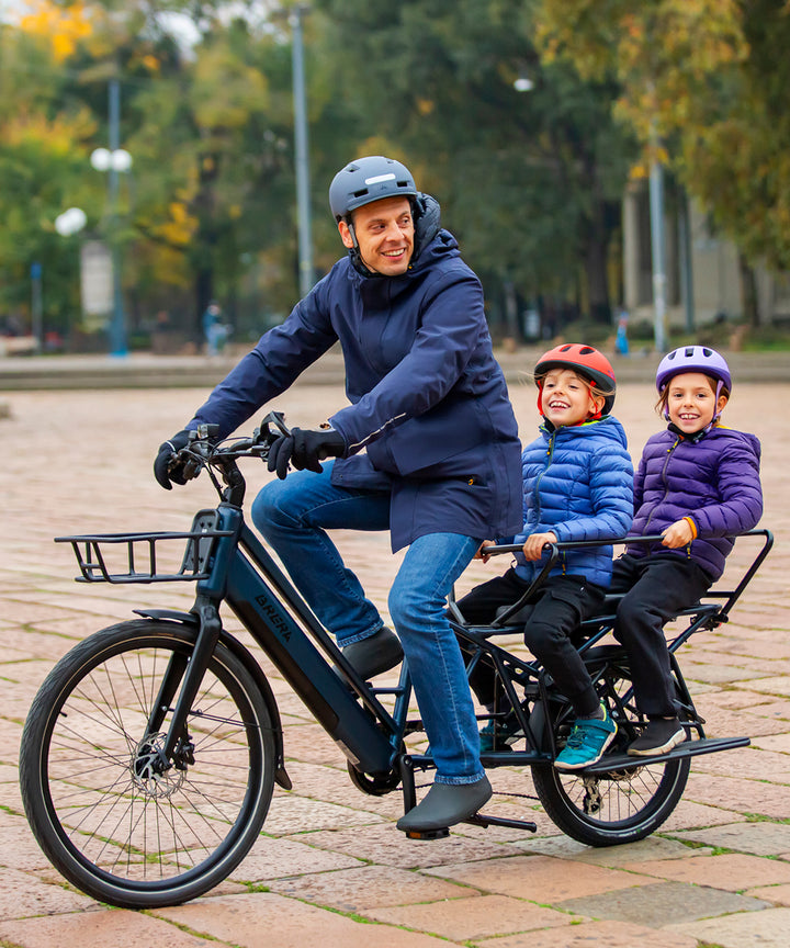 *L'autonomia delle e-bike può variare in funzione del peso trasportato (peso del ciclista + peso degli oggetti trasportati), del dislivello (salite), della temperatura e dal fondo stradale.